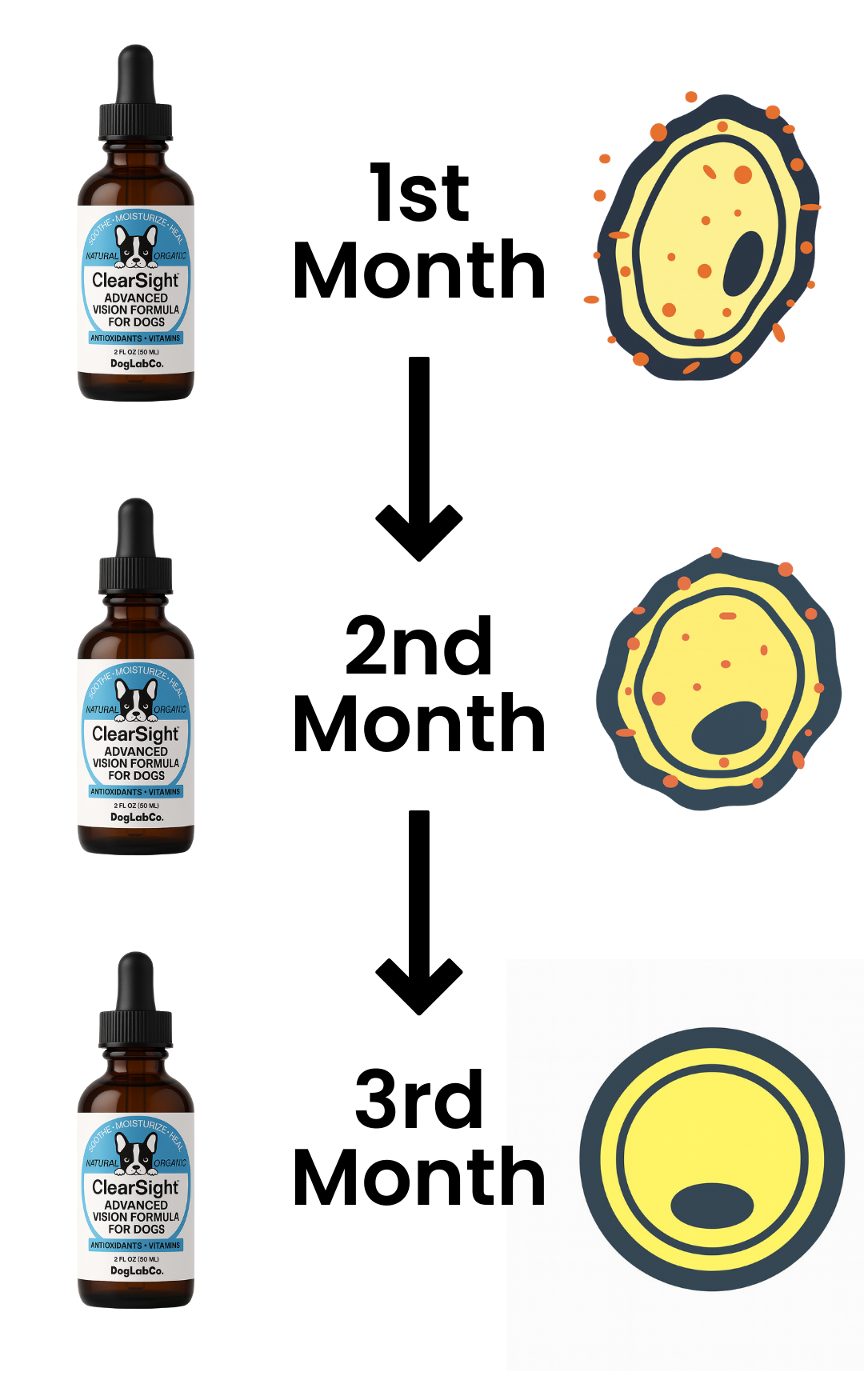 As dogs age, their eyes are affected by poor nutrition, UV rays, and low blood oxygen levels, which can build up cellular debris and impair vision. ClearSight helps detoxify cellular debris and provides essential nutritional support.
